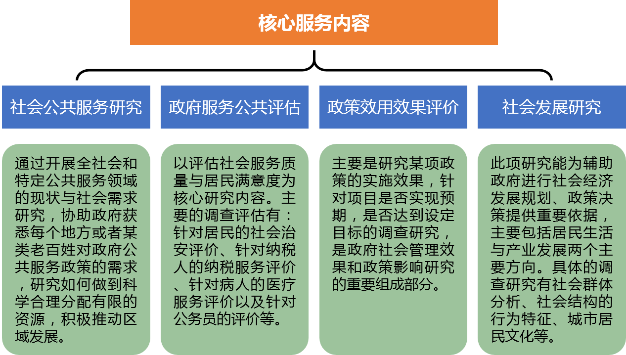 目前我國各級政府在追求發(fā)展效率的同時,也在積極推動和創(chuàng)建和諧社會,如何掌握社會需求,提供合理服務(wù),降低社會公共事務(wù)成本,取得工作好評對于決策和執(zhí)行層都非常重要。另外如何科學、合理、客觀地由社會對工作做出真實評估,對于總結(jié)特點、發(fā)揚優(yōu)勢、彌補不足更為重要。華夏經(jīng)緯在政府/協(xié)會等領(lǐng)域擁有豐富的資料、最新的政府統(tǒng)計信息及相關(guān)研究經(jīng)驗,并受到了各級政府和職能部門的充分肯定。